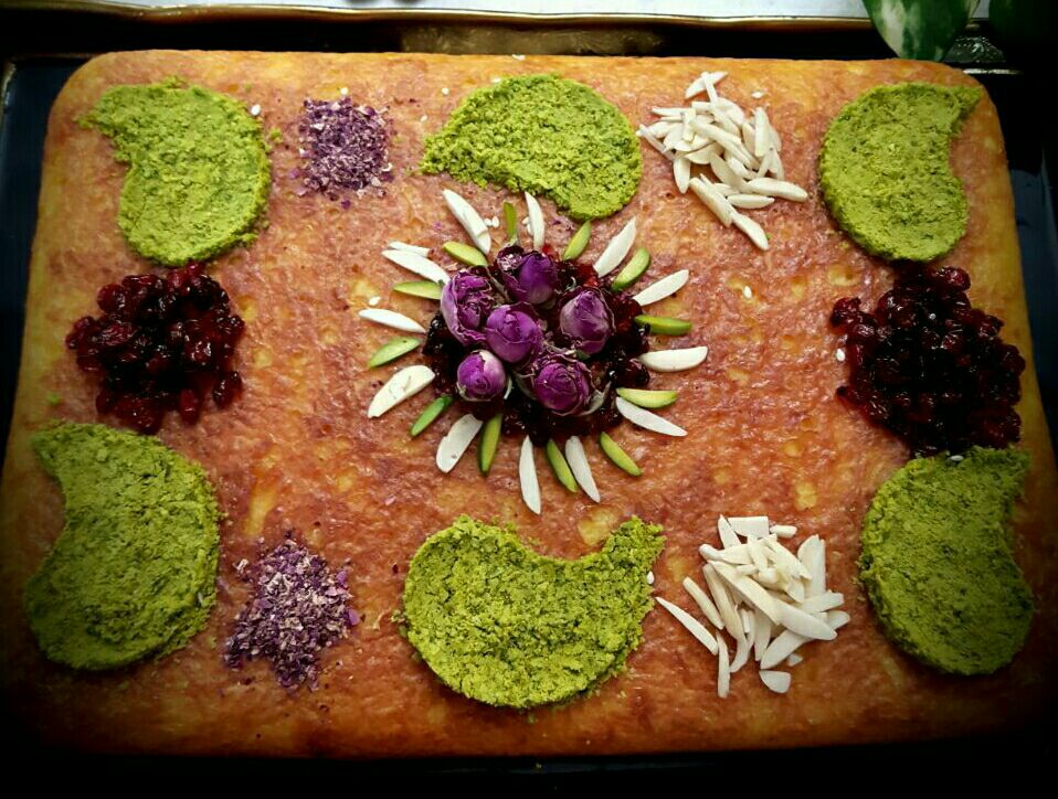 من برای تزیین از خلال بادام و پسته و زرشک استفاده کردم، شما هم میتونید با مواد دلخواهتون ته چین رو زیبا تر کنید.